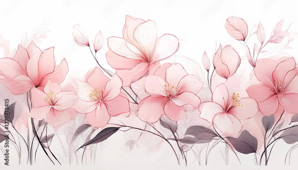 Fototapeta samoprzylepna Różowe namalowane kwiaty tapeta vintage