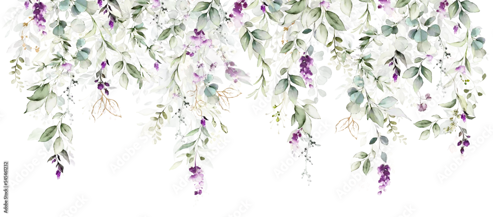 Fototapeta samoprzylepna watercolor arrangements with flowers lavender. bouquets with wildflowers, leaves, branches. Botanic wallpaper