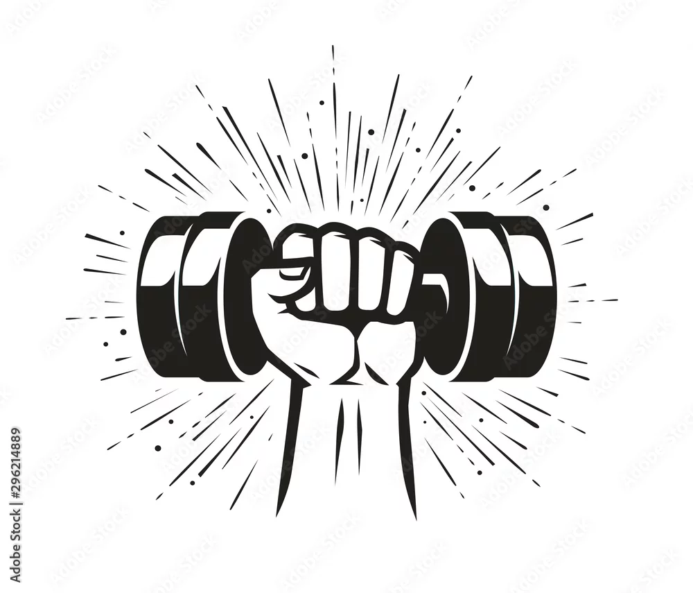 Fototapeta samoprzylepna Arm with dumbbell. Gym club, fitness logo. Vector illustration