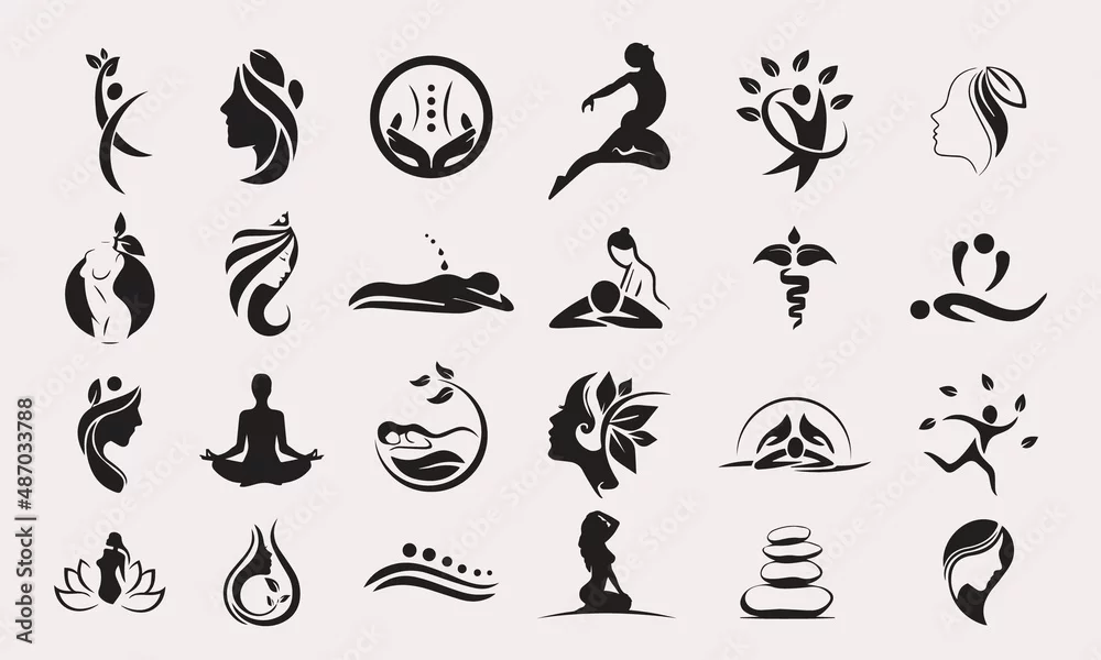 A set of female hand logos in a minimal linear style. Vector logo design Templates with different hand gestures, Crystal. For cosmetics, beauty, tattoo, Spa, feminine, jewelry store