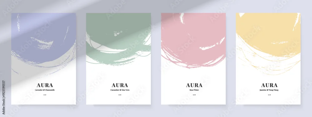 Fototapeta samoprzylepna Pastel abstract spot banner set. Paint stroke texture, poster design. Wellness center, cosmetics brand, beauty spa salon, aromatherapy, yoga studio concept. Vector illustration.