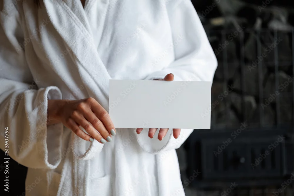 Fototapeta samoprzylepna Woman with gift certificate for spa treatment in sauna