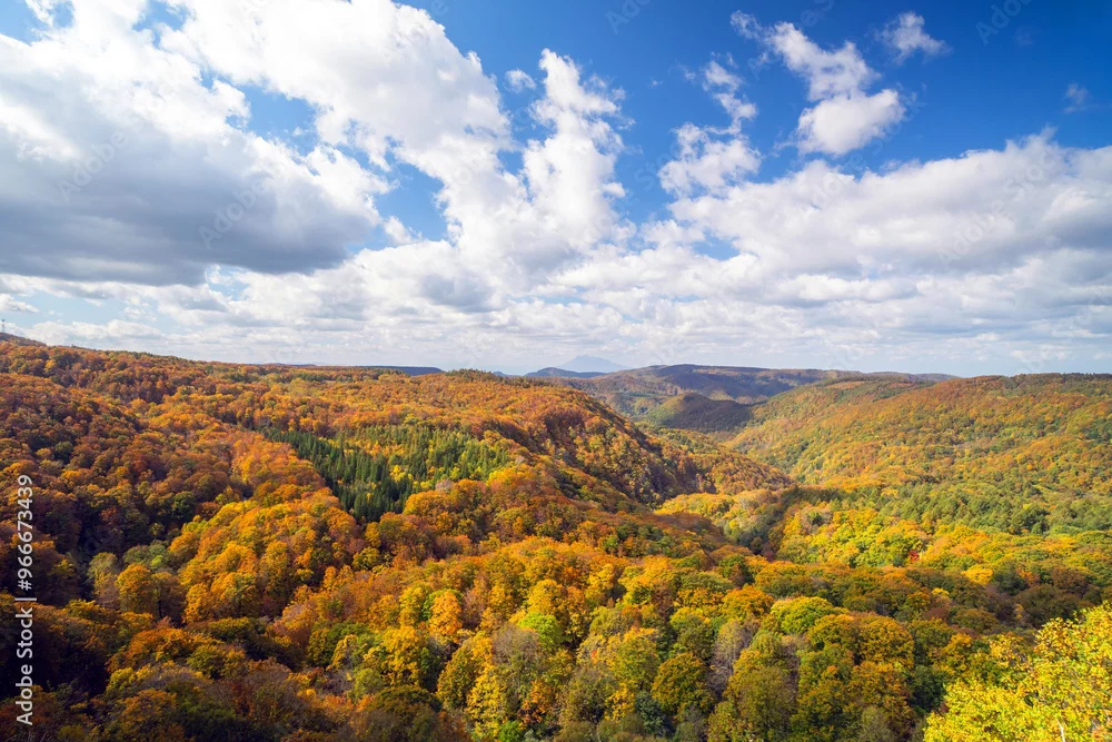 Fototapeta samoprzylepna Beautiful autumn trees on the Shirakami mountainous in Aomori Tohoku Japan, the Jogakura location near Jogakura bridge