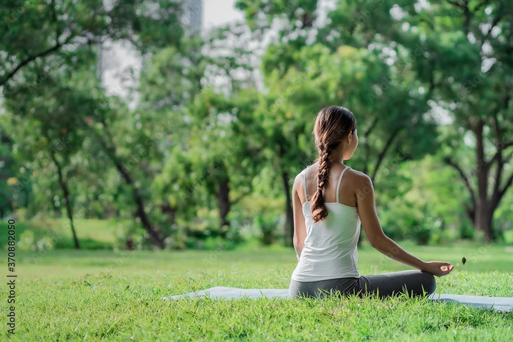 Fototapeta samoprzylepna Healthy women doing yoga in the moring at the park . concept healthy and outdoor activity.