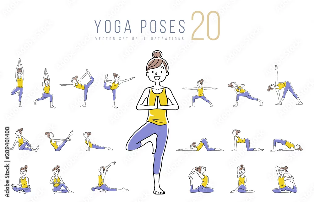 Fototapeta samoprzylepna Illustration material: woman, yoga, pose, set, variation