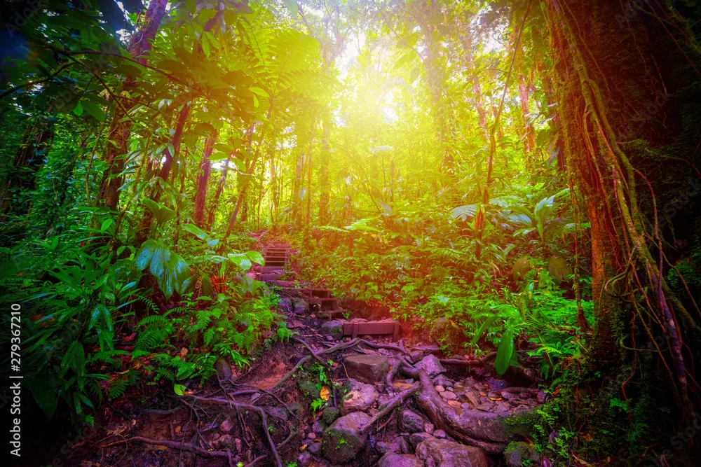 Fototapeta samoprzylepna Krok i korzenie w dżungli Basse Terre na Gwadelupie