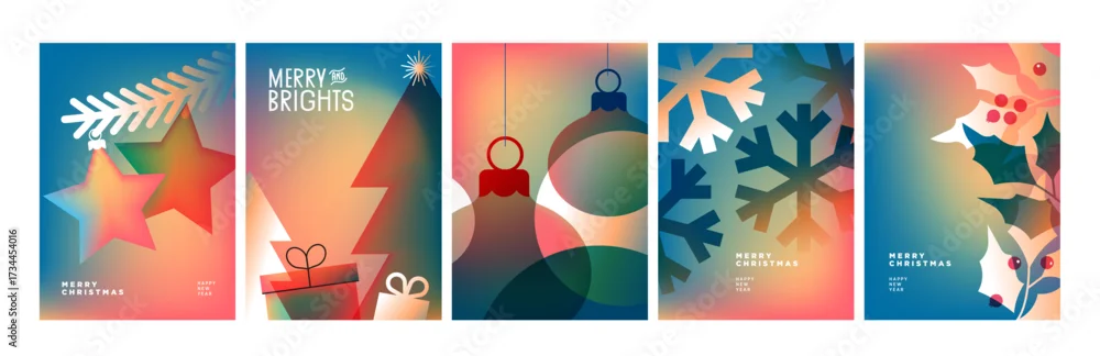 Fototapeta samoprzylepna Christmas and New Year holiday card collection. Vector illustration templates for holiday greeting card, background, website and social media banner, marketing material.