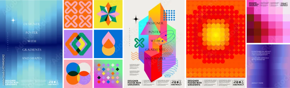 Modern abstract gradient art poster with geometric shapes, collage, colorful pattern, and vibrant compositions for graphic futuristic design, branding, web background and creative cover