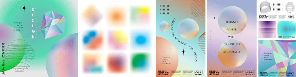 Modern abstract gradient vector poster with geometric shapes, circle, ball, spheres, space and colorful pattern, trendy design background for branding, web, cover, print, and creative projects.