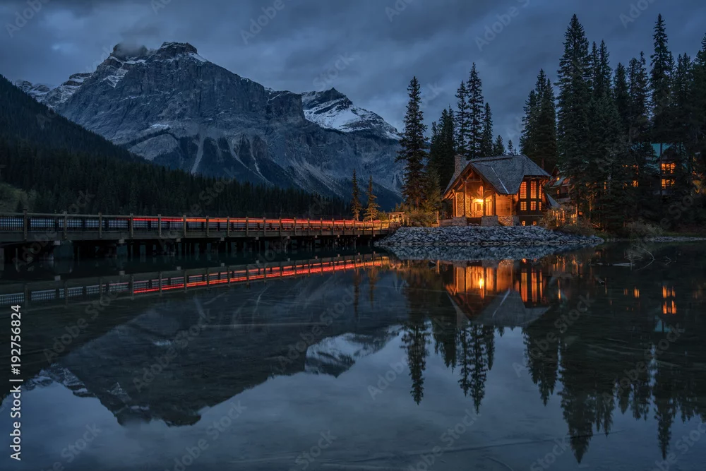 Fototapeta samoprzylepna Pora nocna Emerald Lake Lodge w Parku Narodowym Yoho
