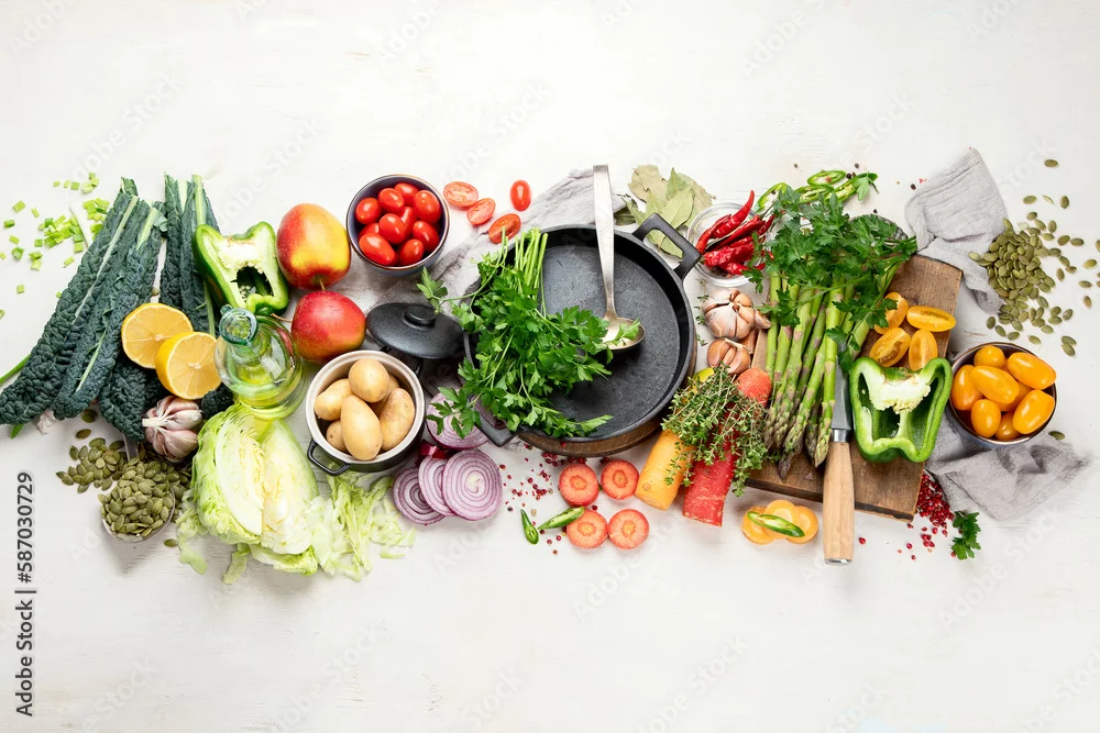 Fototapeta samoprzylepna Healthy food selection. Detox and clean diet concept. Foods high in vitamins, minerals and antioxidants. Anti age foods. - jedzenie - Picturewall.pl