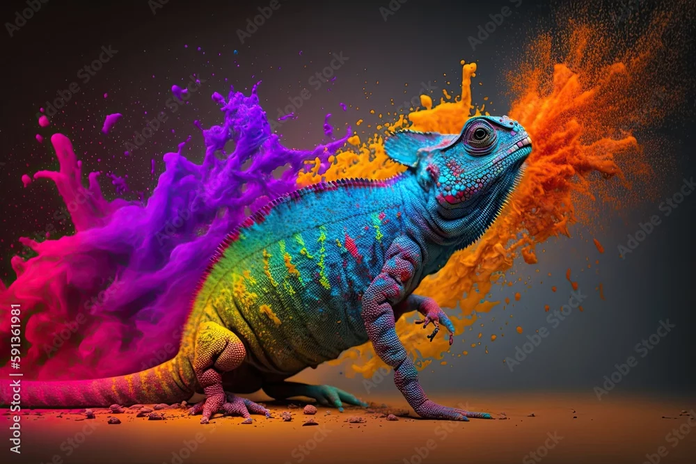 Fototapeta samoprzylepna Colorful chameleon on a branch, a creative concept of adaptation and transformation. Generative AI