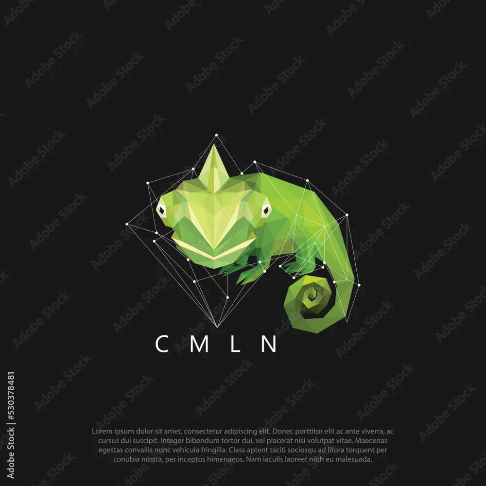 Fototapeta samoprzylepna low polygon style abstract green chameleon logo vector. Geometric triangular lizard design