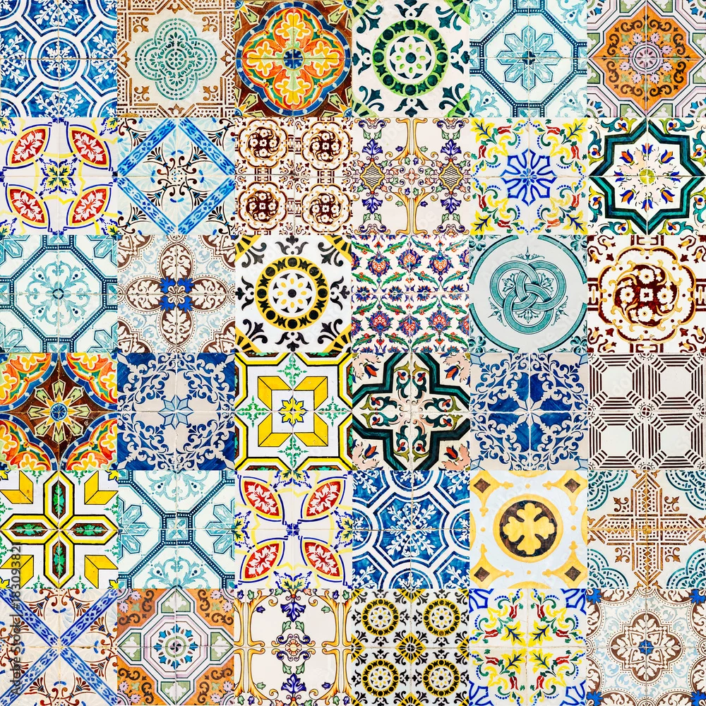 Fototapeta samoprzylepna Kolaż Dekoracyjne Ceramiczne Ściany Wzór Tekstury W Lizbonie, Portugalia