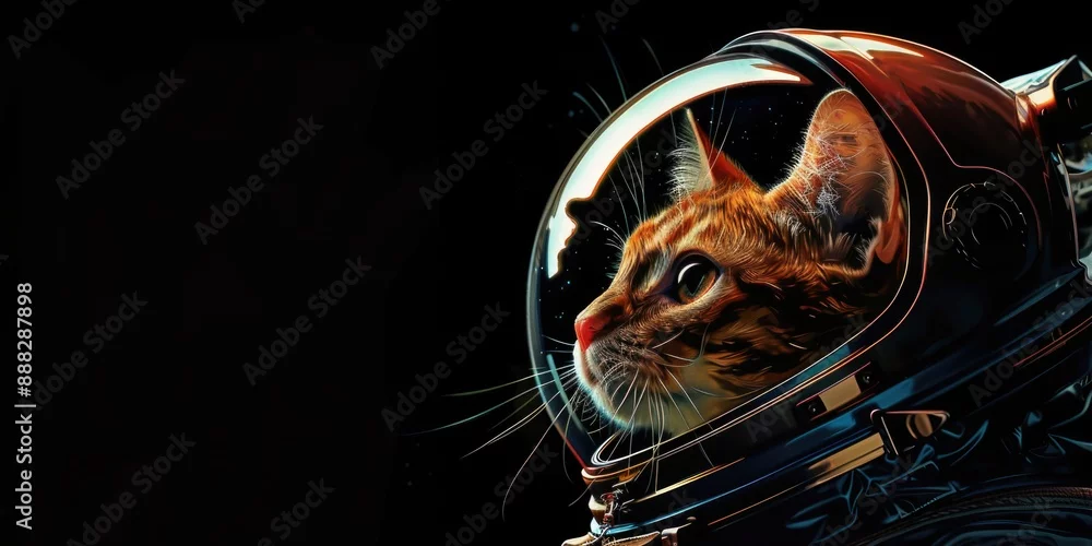 Fototapeta samoprzylepna A playful feline adorned with an oversized astronaut helmet, peering curiously