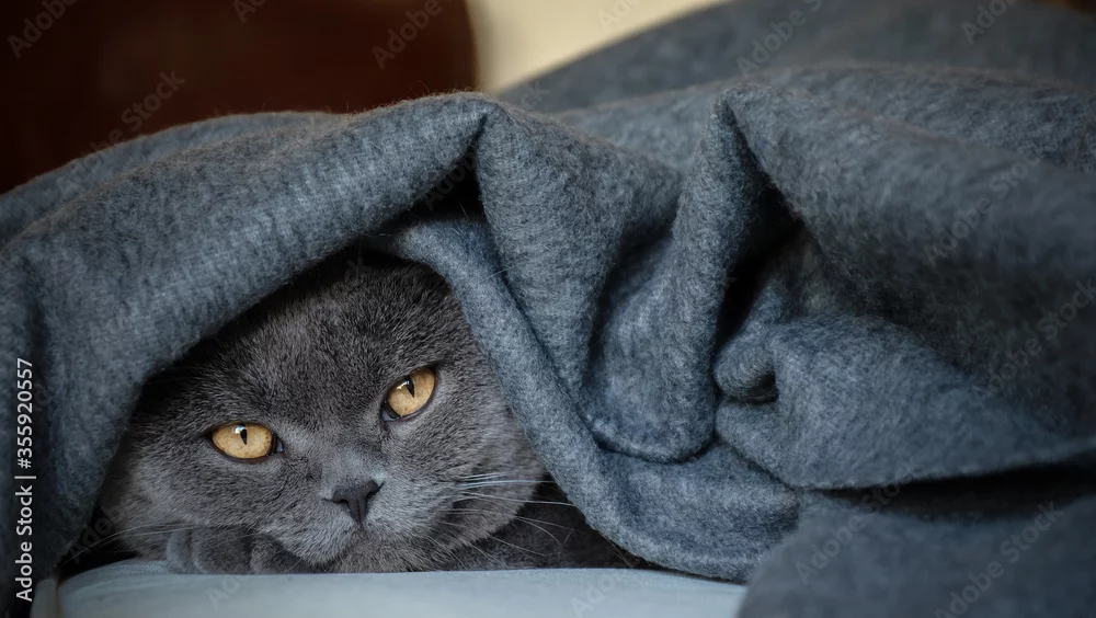 Fototapeta samoprzylepna Cat under blanket - koty - Picturewall.pl