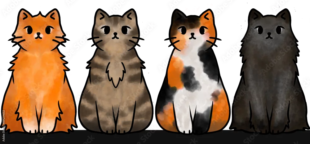Fototapeta samoprzylepna Cztery koty o różnym umaszczeniu