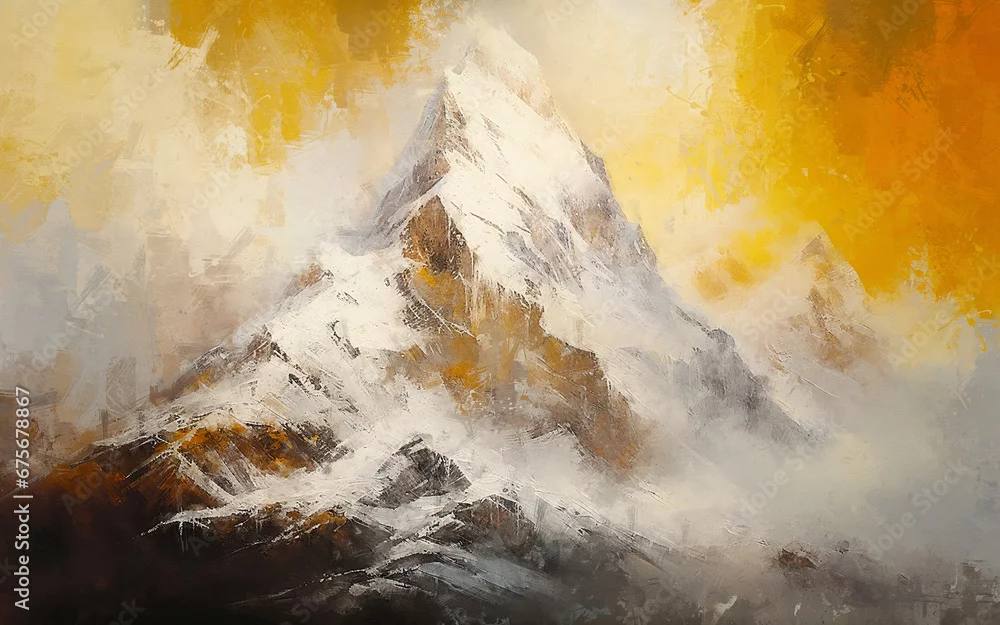 Fototapeta samoprzylepna Abstract golden mountain oil painting art painting, hand drawn mountain wallpaper background