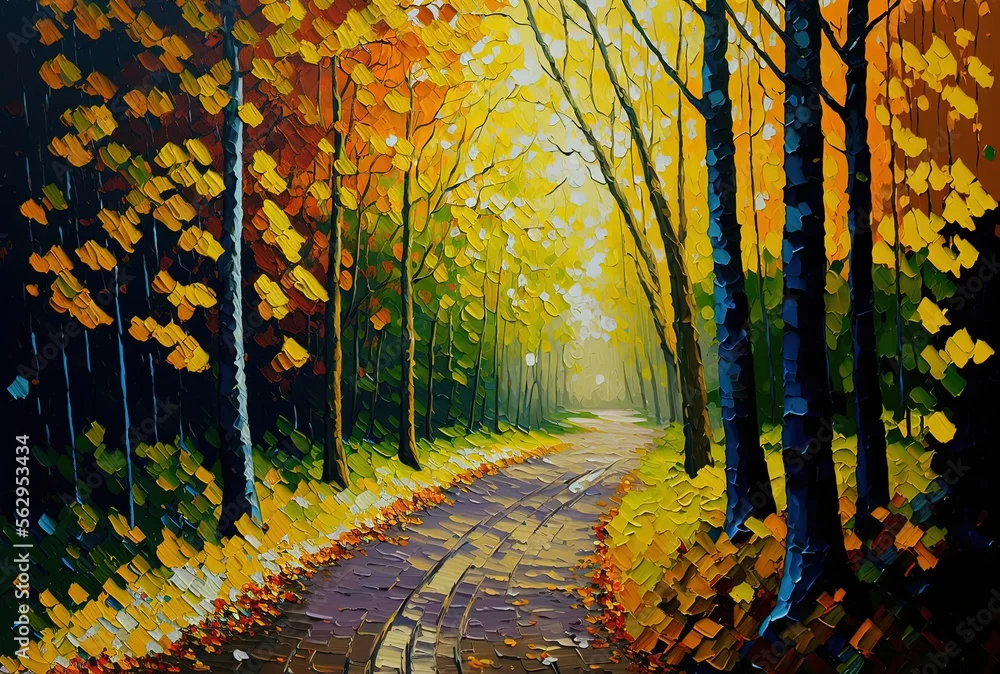 Fototapeta samoprzylepna leśnego szlaku jesienią, wygenerowane AI