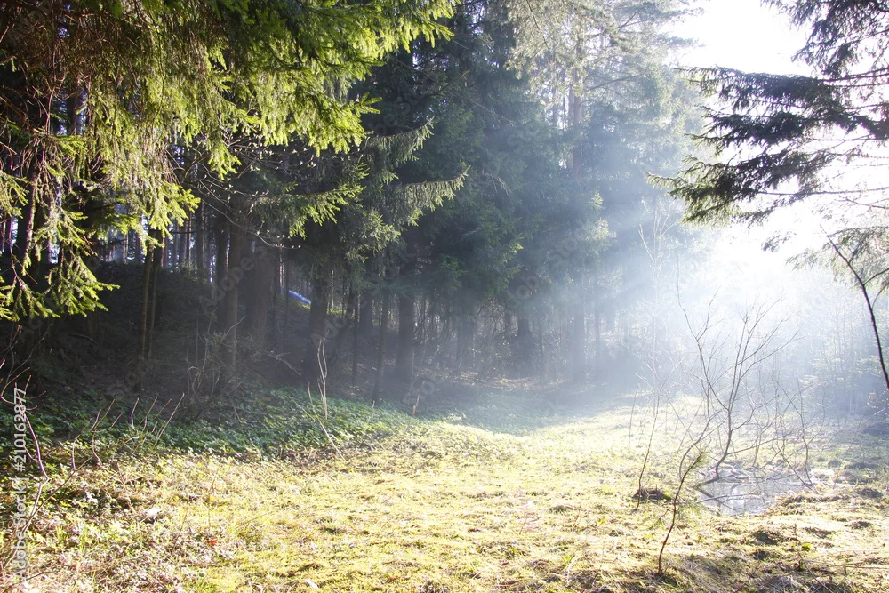 Fototapeta samoprzylepna promienie słońca w lesie
