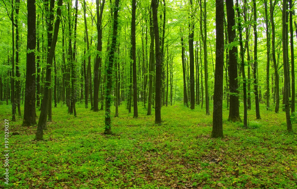 Fototapeta samoprzylepna zielony las na wiosnę
