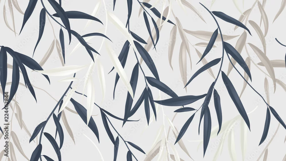 Fototapeta samoprzylepna Floral seamless pattern, multicolored Weeping Willow leaves on light grey background