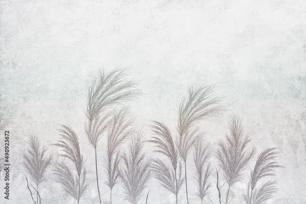 Fototapeta samoprzylepna Trawa pampasowa, trzciny na betonowej ścianie.
