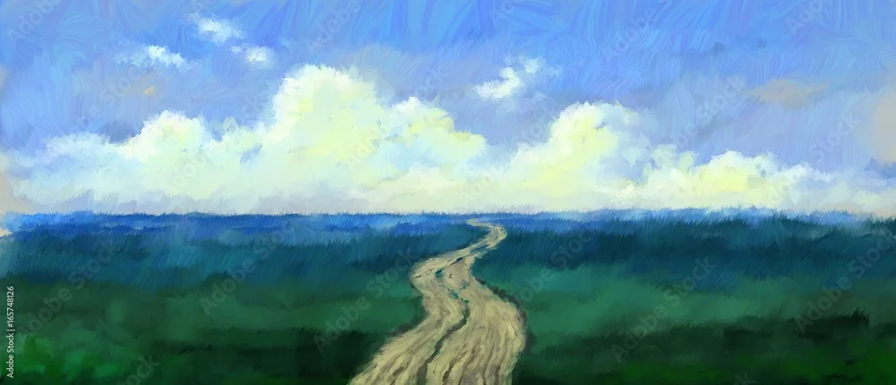 Fototapeta samoprzylepna Droga. Pejzażowe obrazy olejne. Sztuka cyfrowa