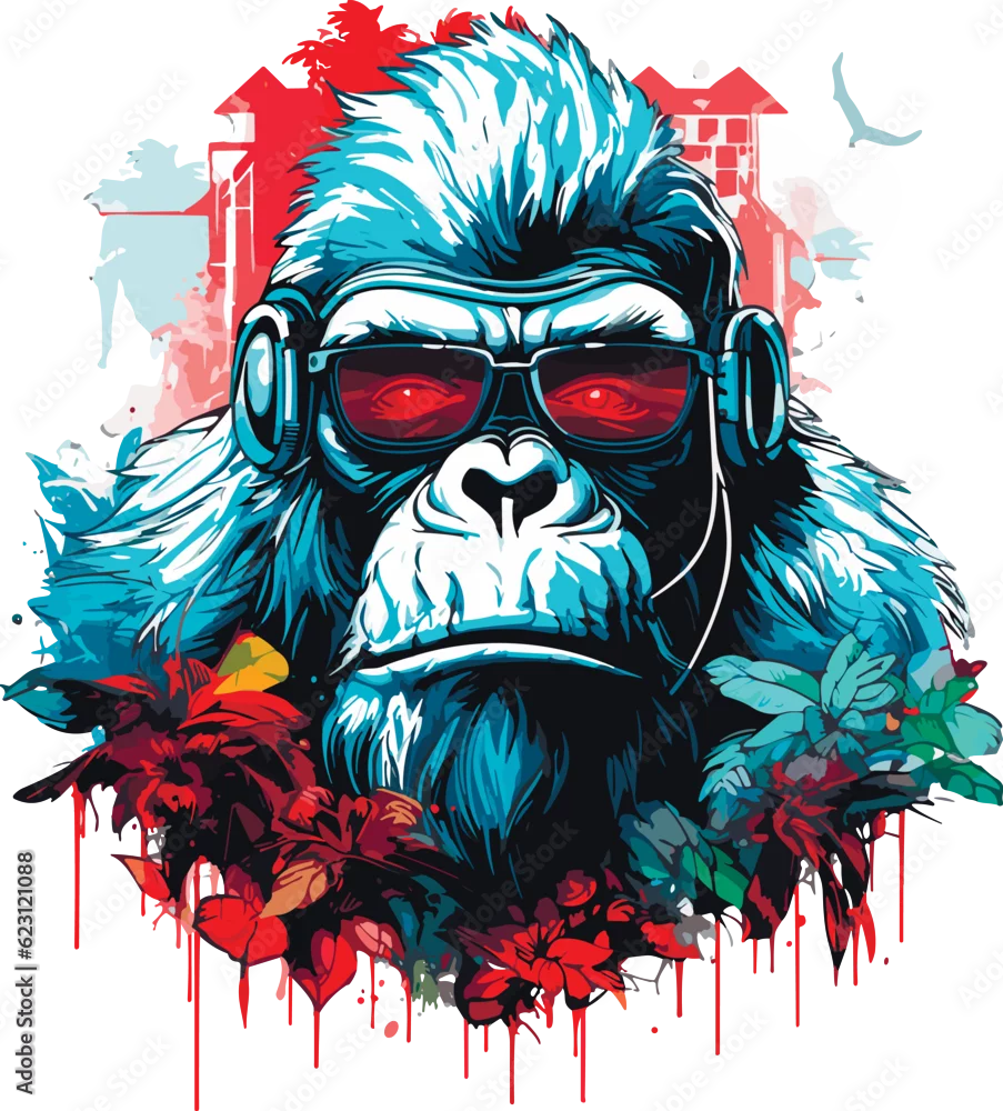 Fototapeta samoprzylepna gorilla head with red eyes multicolor drawing, t-shirt design vector illustration