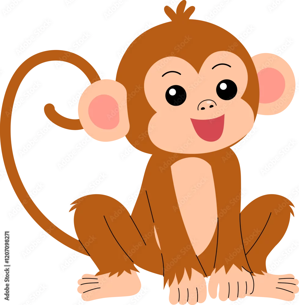 Fototapeta samoprzylepna playful little monkey sitting on the floor and looking up illustration