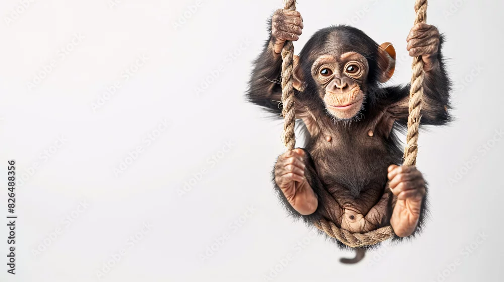 Fototapeta samoprzylepna Playful monkey swinging on a white background