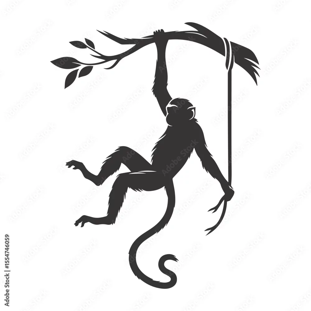 Fototapeta samoprzylepna Swinging monkey silhouette black vector for jungle wildlife and fun motion nature designs