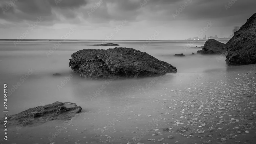 Fototapeta samoprzylepna Długi ujawnienie podczas zmierzchu przy plażą Izrael