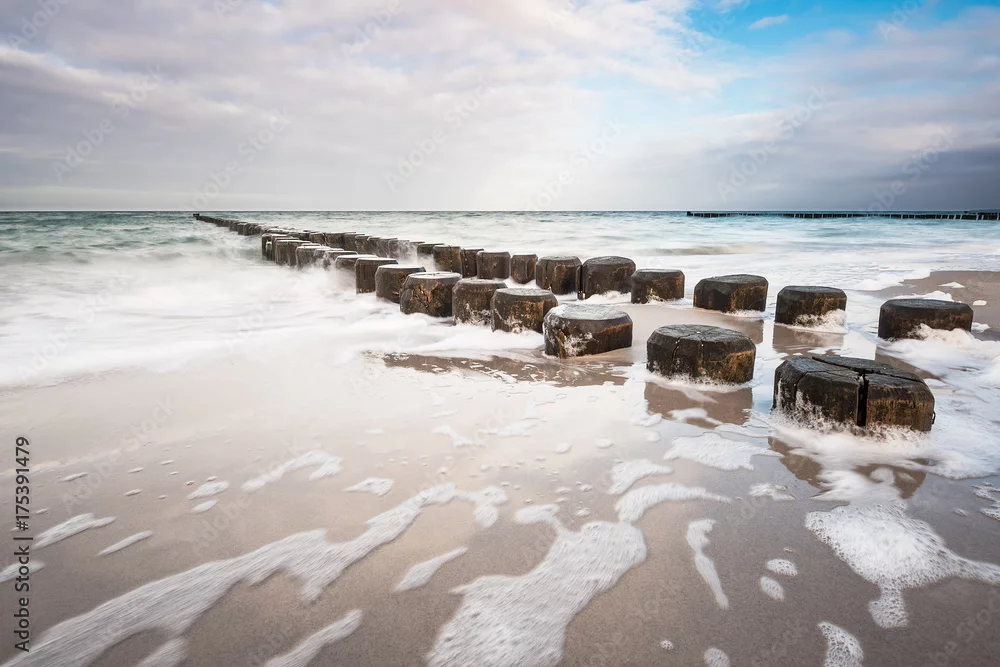 Fototapeta samoprzylepna Wrota na wybrzeżu Morza Bałtyckiego w burzliwy dzień