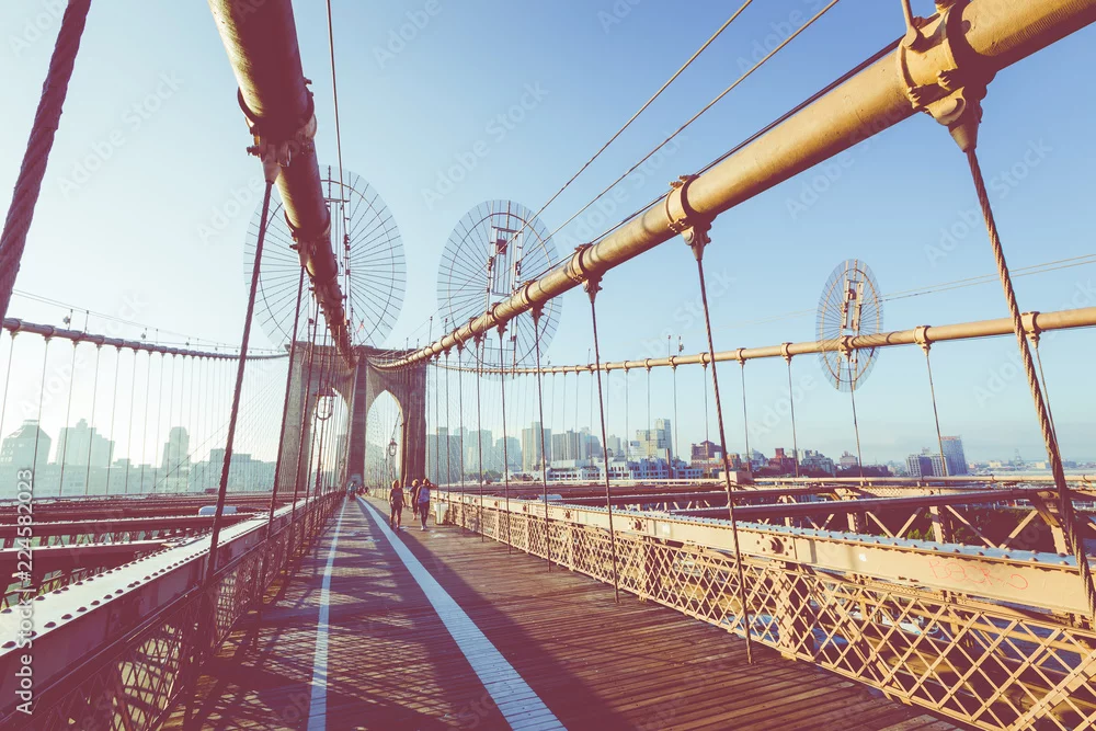 Fototapeta samoprzylepna most brookliński o wschodzie słońca w kolorystyce vintage, miasto Nowy Jork, USA