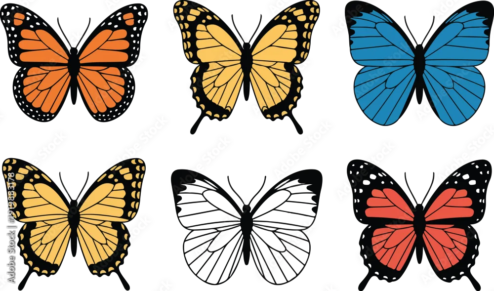 Fototapeta samoprzylepna Colorful Butterfly Collection – Monarch and Swallowtail Species Vector Set