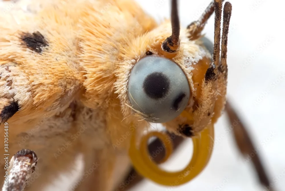 Fototapeta samoprzylepna Macro Photo of Eye of Little Yellow Butterfly Isolated on White Background