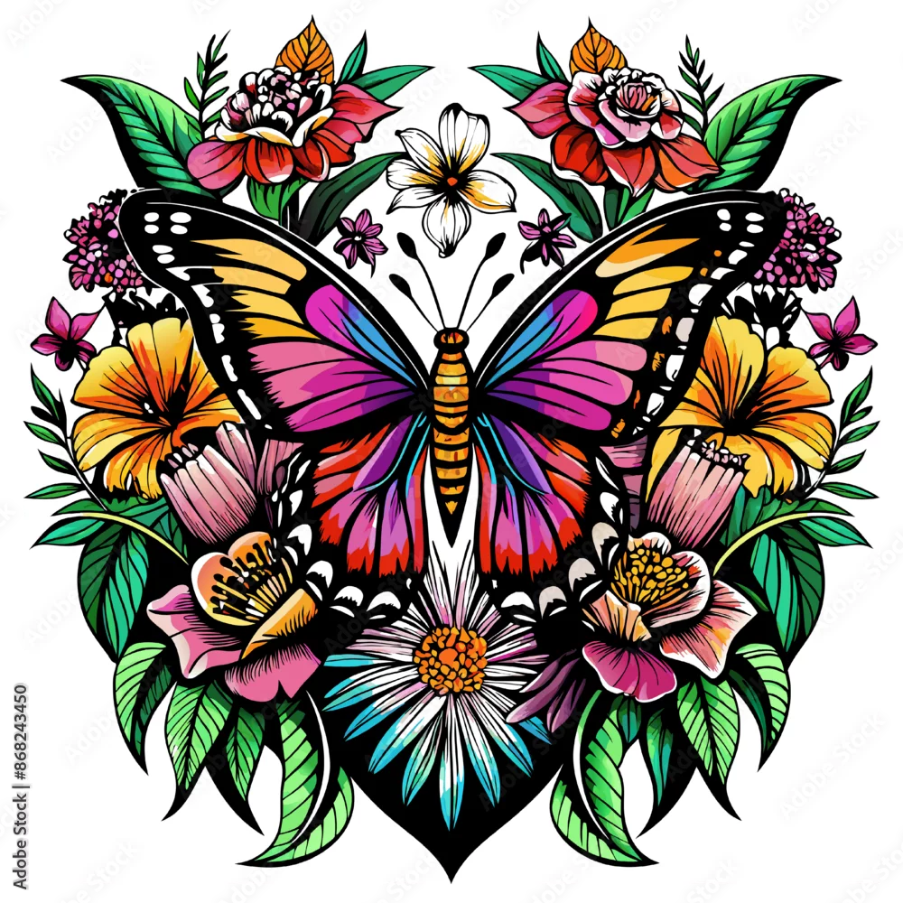 Fototapeta samoprzylepna Motyl wśród kwiatów - motyle - Picturewall.pl