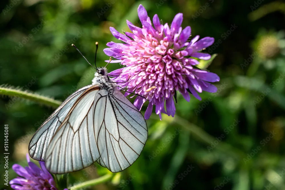 Fototapeta samoprzylepna papillon blanc sur fleur mauve