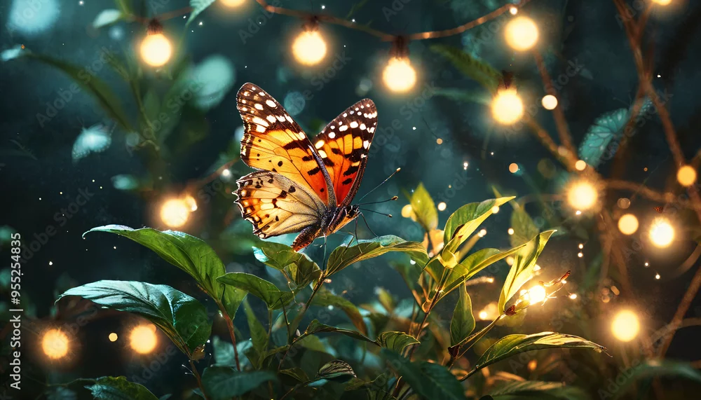 Fototapeta samoprzylepna Papillon illuminé dans une forêt enchantée