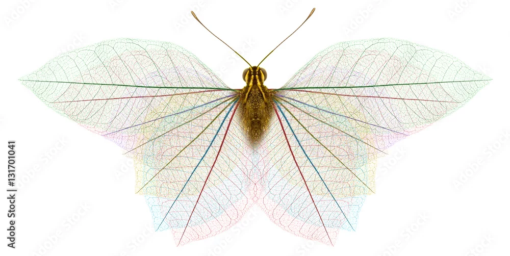 Fototapeta samoprzylepna papillon squelette de feuilles mortes, fond blanc