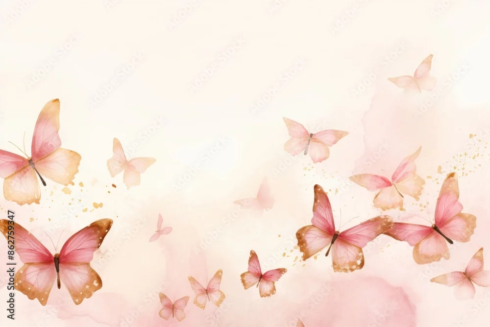 Fototapeta samoprzylepna Pink butterflies watercolor background backgrounds pattern petal.