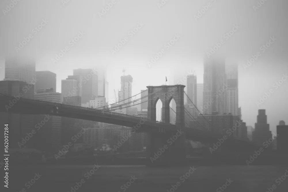 Fototapeta samoprzylepna Brooklyn Bridge i panoramę Nowego Jorku w czarno-białym stylu