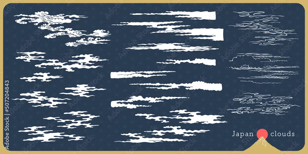Fototapeta samoprzylepna 浮世絵タッチのただよう雲デザインセット。