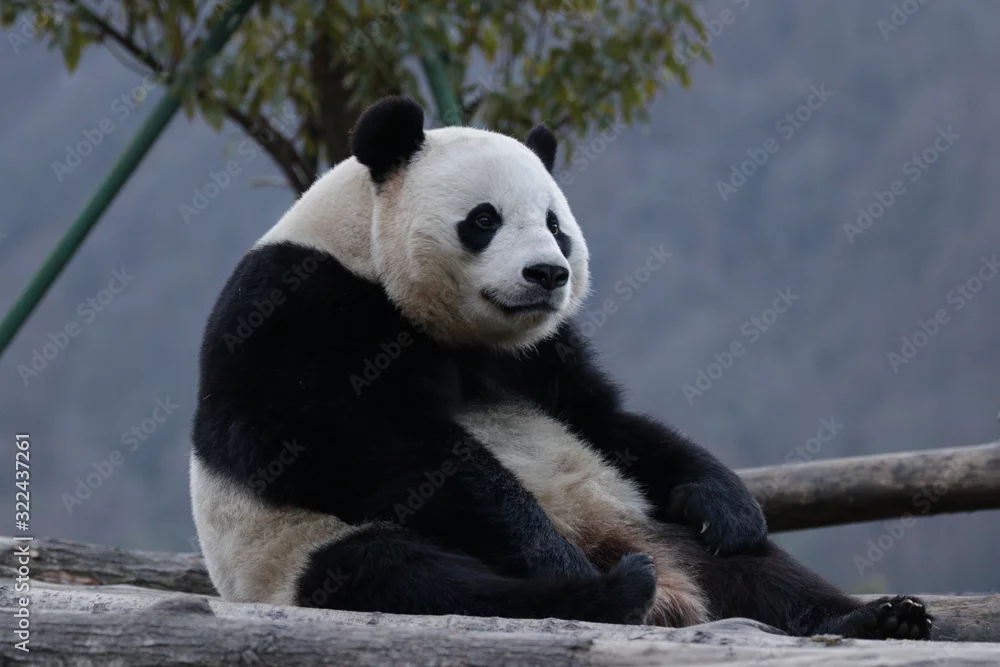 Fototapeta samoprzylepna American Born Female panda, Bao Bao, is Chilling out in Winter time, Wolong Giant Panda Nature Reserve, China - pandy - Picturewall.pl