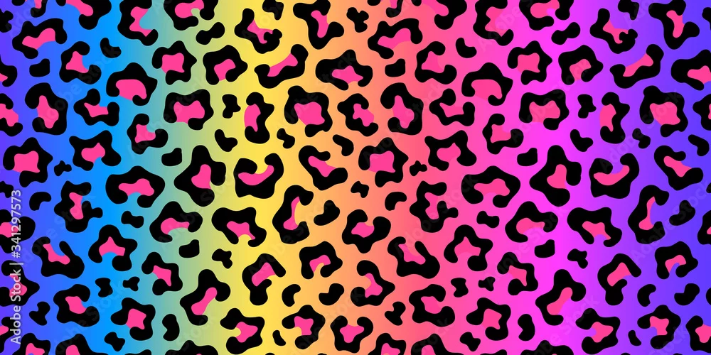 Fototapeta samoprzylepna Neon rainbow colored leopard print seamless pattern. Gradient background. Vector wallpaper.
