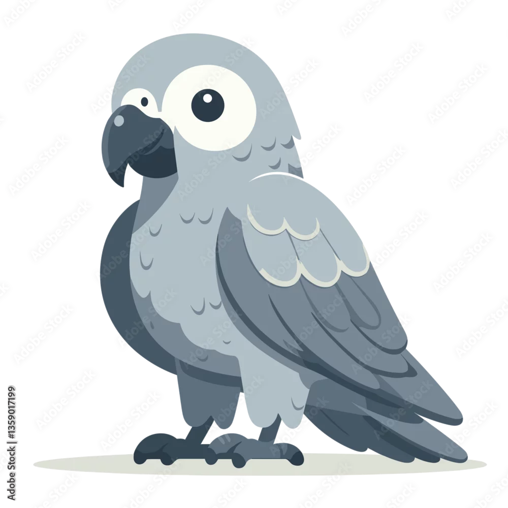 Grey African parrot with detailed feathers on light background. Perfect for exotic pet care information, bird intelligence themes, or wildlife conservation.