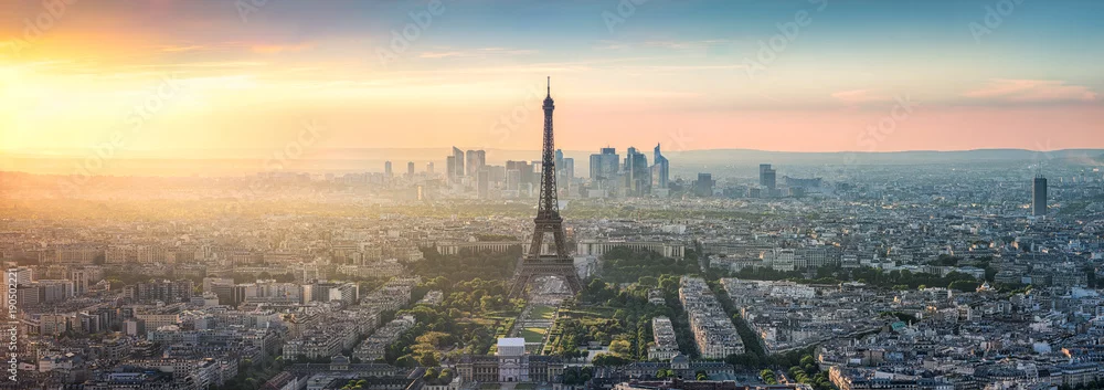 Fototapeta samoprzylepna Panorama panoramę Paryża o zachodzie słońca z wieży Eiffla - Paryż - Picturewall.pl