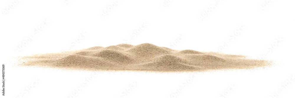 Fototapeta samoprzylepna Desert sand dune isolated on white background and texture. Heap of dry beach sand on white background - piasek - Picturewall.pl