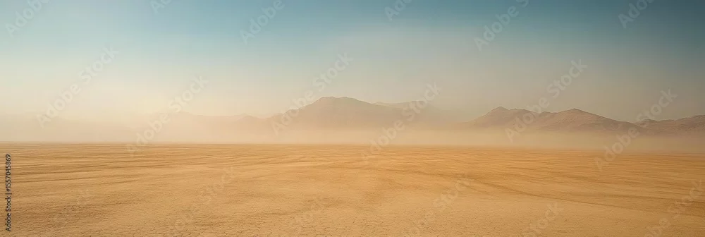 Fototapeta samoprzylepna Minimalist Chihuahuan Desert composition with heat haze distortion at noon featuring only sand and sky for abstract backgrounds, desert studies
